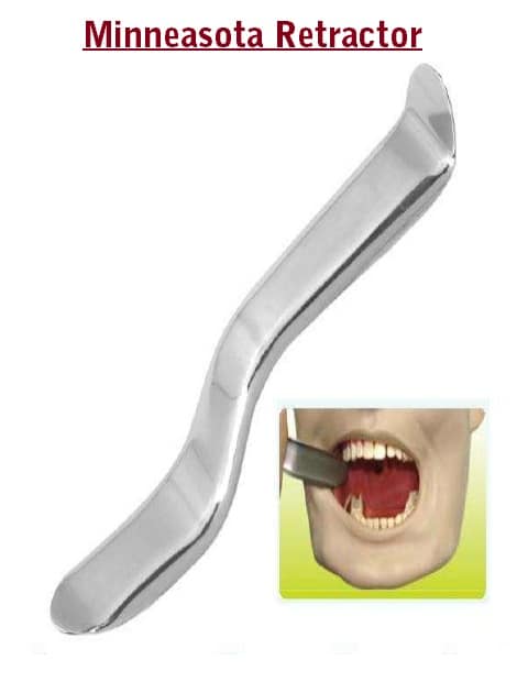 The Minnesota Retractor is used to hold mucoperiosteal flaps, cheeks, lips, and tongue away from the surgical area measuring 5.5″ long and 20.5mm wide.